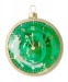 Bombka w kształcie zegarka z dewizką (wersja zielona). Z jednej strony tarcza zegara, z drugiej zimowy krajobraz.